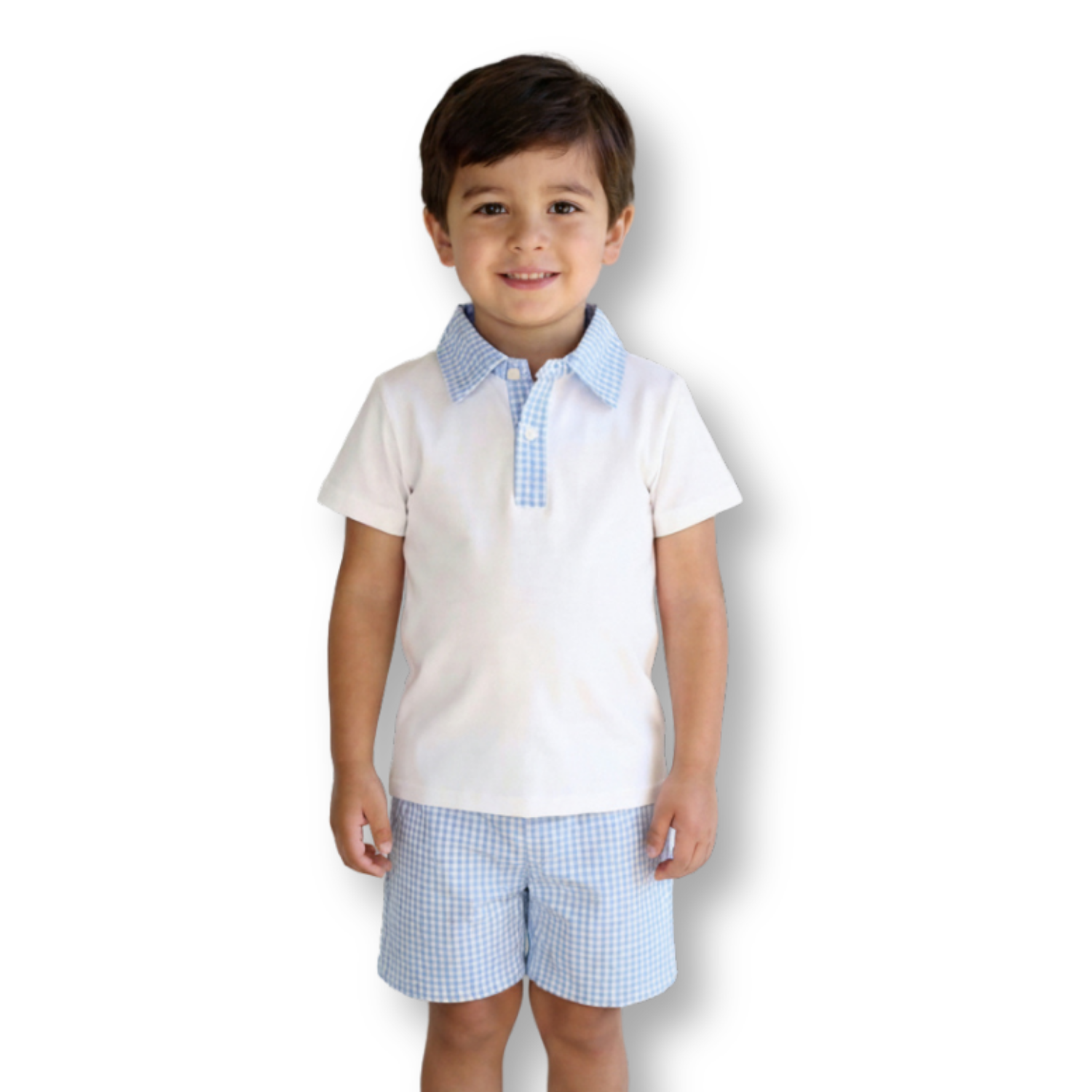 Our Boy's Premium Short Sleeved Polo Style Collared Tee is perfectly basic with high quality construction and a perfect fit! The gingham trim and collar add a perfect boutique touch!
