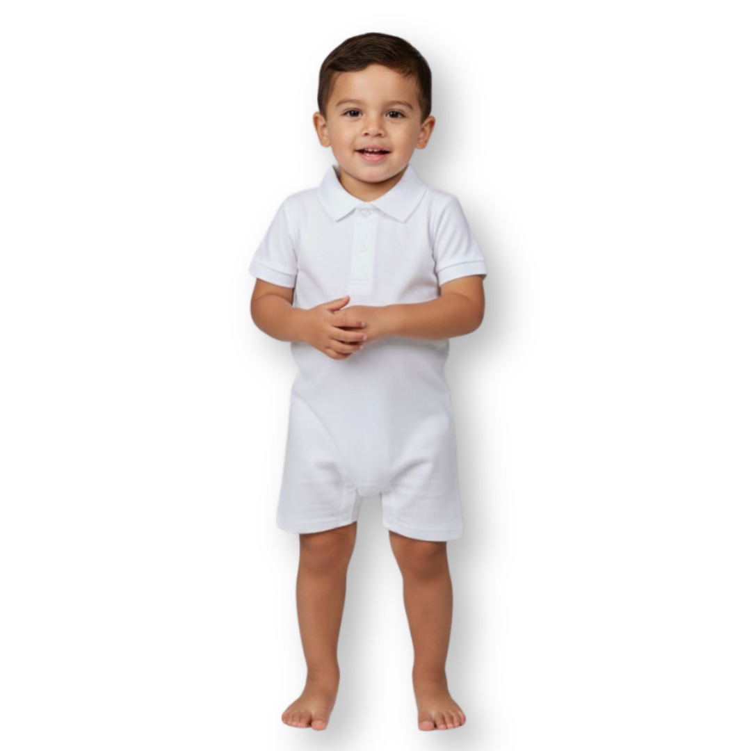 • Blank Boy's Short Sleeved Polo Style Collared Romper