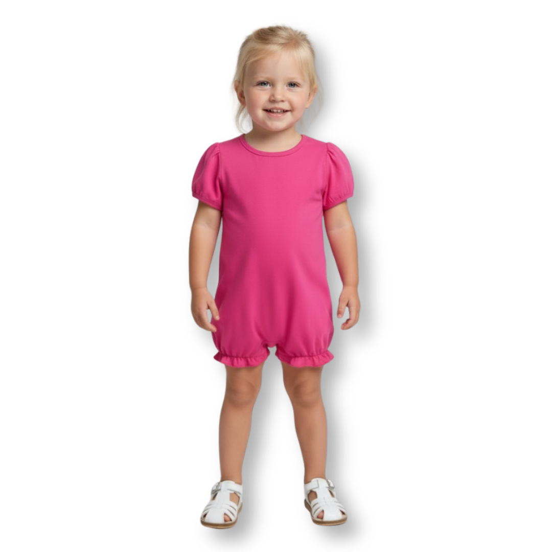 Our Blank Girl's Ruffle Romper is made of soft, 100% combed knit cotton and is perfect for Spring and Summer days! Simply add a monogram, applique, or heat press design to make a boutique Girl's outfit!
