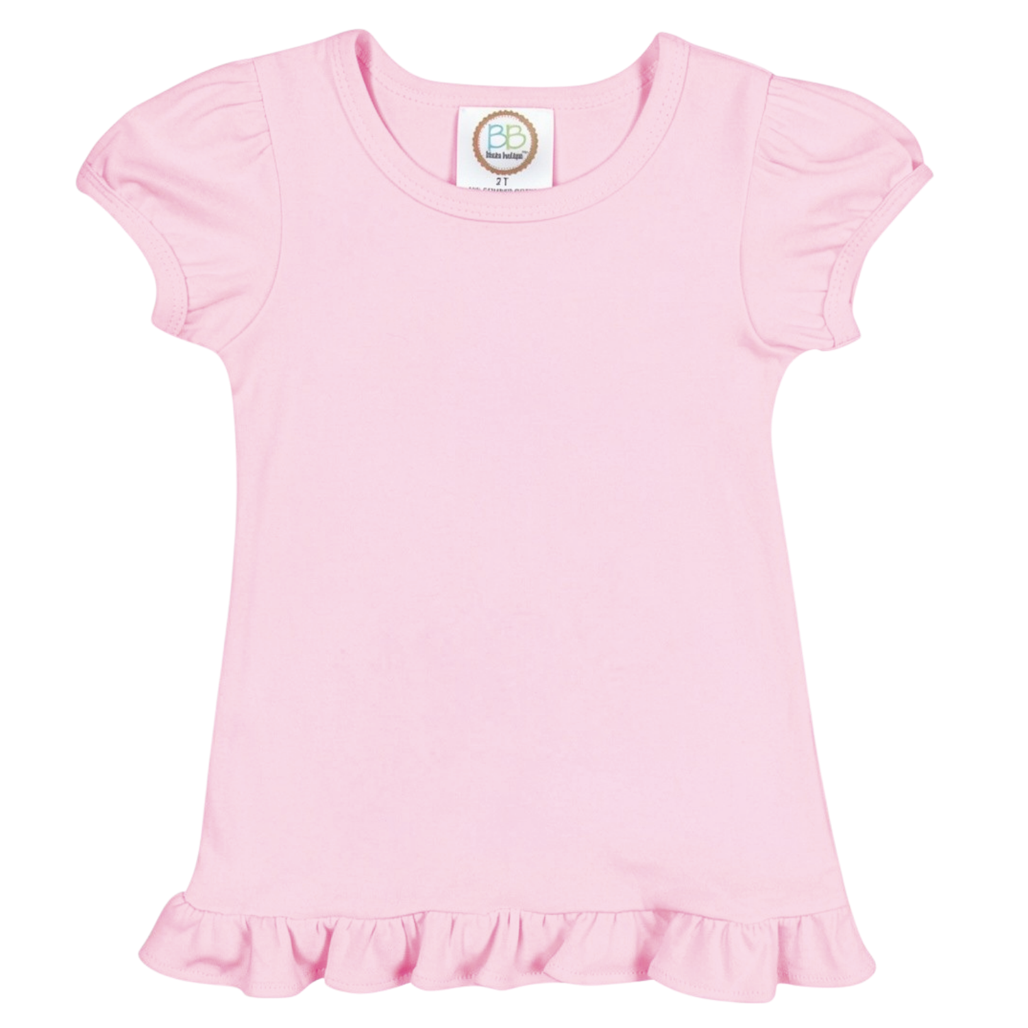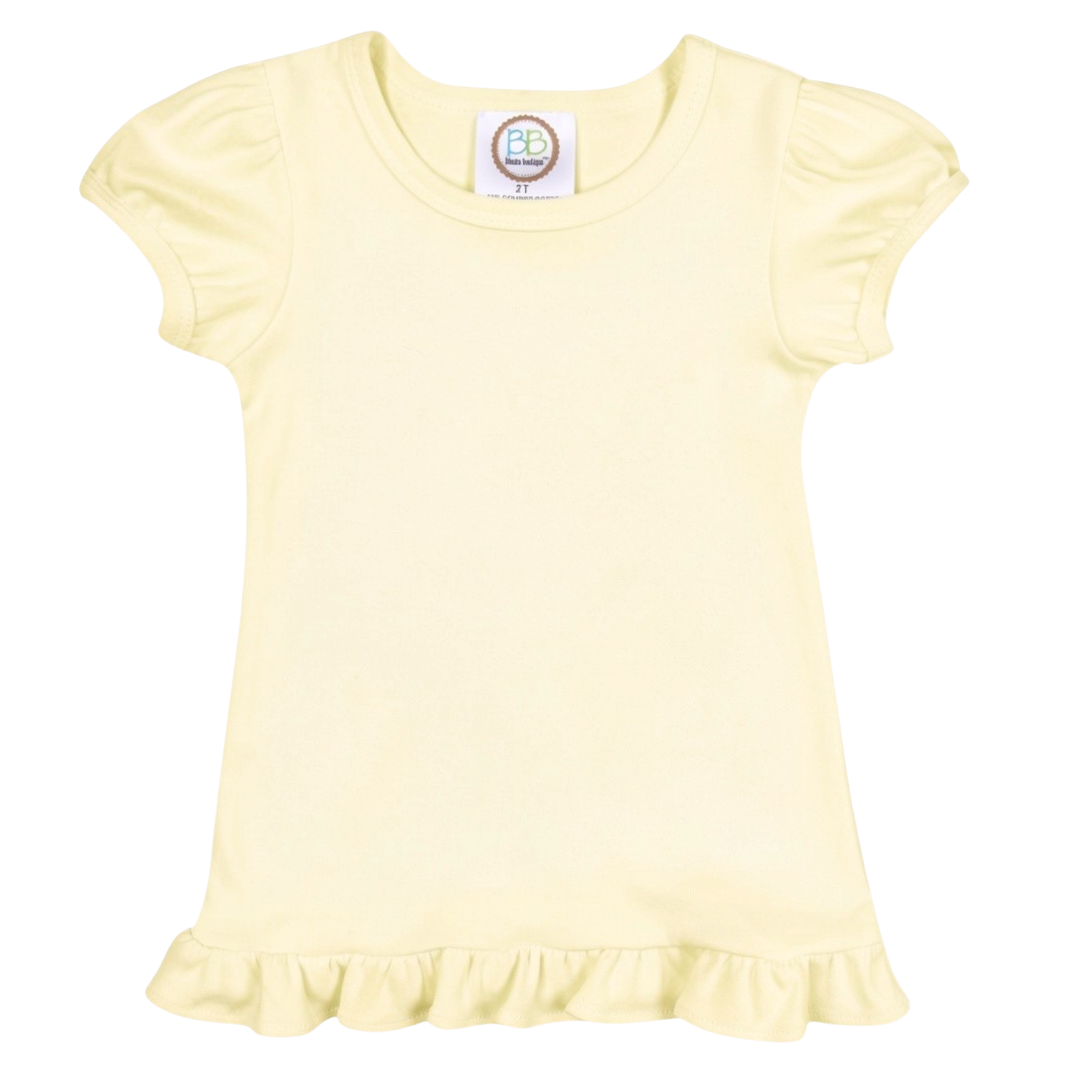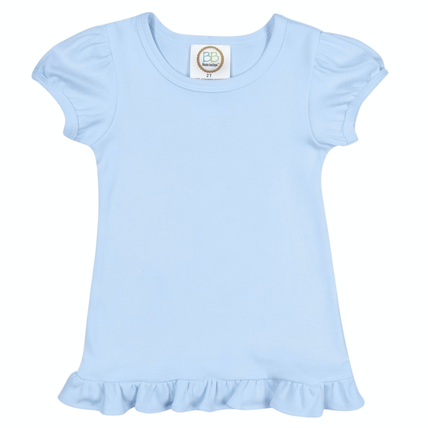 • Our First Tee ever! This premium cotton knit girl's short sleeve ruffle embroidery tee is a customer favorite. Our best selling design with classic lines and detailed fit makes the perfect blank canvas for your next applique, embroidery, monogram or heat press project. With its flirty ruffle bottom and puffy cap sleeves, this adorable tee will be sure to add that feminine touch.