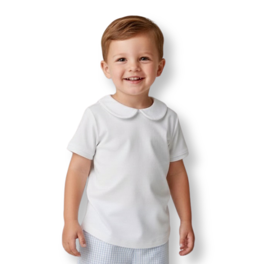 Our Boy's Short Sleeved Peter Pan Collar Tee is the perfect boutique staple with high quality construction and a perfect fit!