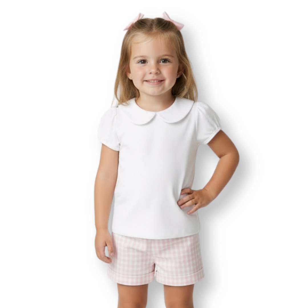 • Blank Girl's Short Sleeve Peter Pan Collar Tee