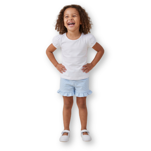 • Our striped girl's ruffle shorts pair perfectly with our embroidery blanks to make a full, ready made outfit!