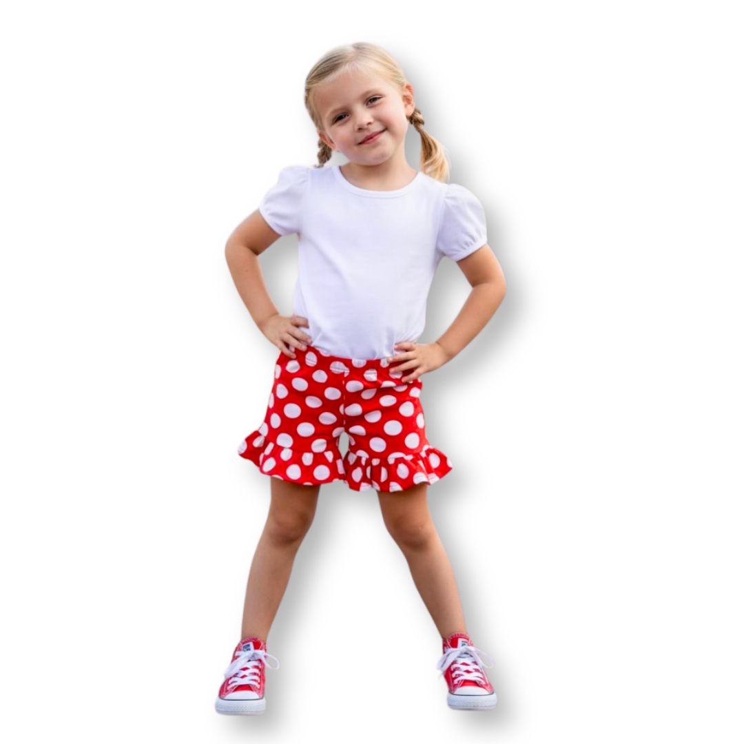 • Our polka dot ruffle shorts pair perfectly with our embroidery blanks to make a full, ready made outfit!