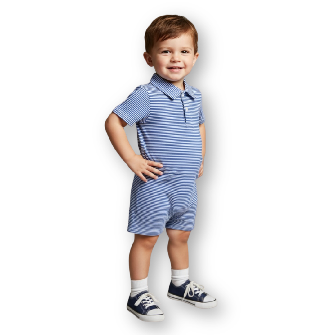 Blank Boy's Short Sleeved Polo Style Collared Romper - Striped