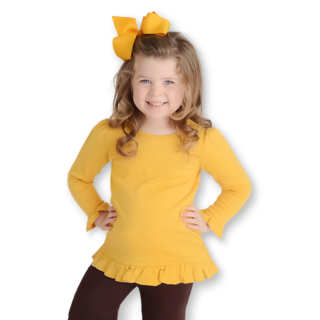 • Blank Girl's Long Sleeve Ruffle Tee Shirt